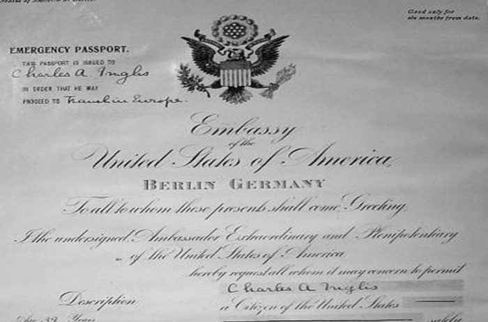 The Germans provided Lody with a substantial amount of money and an American passport under the name of “Charles A. Inglis”. On 14 August, he set off from Hamburg to neutral Norway, from where he took a ship to Newcastle, arriving on 27 August. He then went to Edinburgh, where he found lodgings.