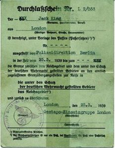 In early 1942 it was decided that MI5 officer Eric Roberts (KV2/3873-3874), fresh from another operation where he had served with distinction, should pose as the Gestapo’s ‘stay behind’ representative in Britain eager to establish a network of people loyal to Germany. Armed with a fake Gestapo identity card, this officer made contact with Perigoe and became known to her and her fellow fascists as ‘Jack King’. Rothschild and Roberts were under instruction not to foster or encourage hostile acts in any way, rather to identify through Perigoe as many people as possible prepared to actively